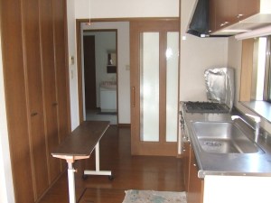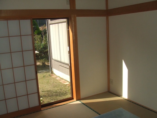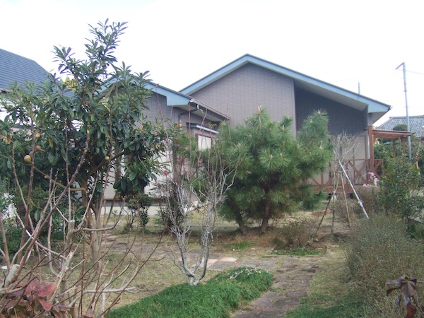 Unlike the previous property we inspected in the coastal town of Onjuku, Chiba Prefecture, this one was firmly embedded in a subdivision, albeit a sparsely occupied subdivision. Slammed up against a dense forest, the sad-looking little gray house had no southern exposure to speak of, and so was situated perpendicularly to the road, offering the vacant lots to the west and east its only views. The fact that the house is 14 years old and nobody has snatched up these lots in the meantime probably means they never will, what with other, more elaborate and better planned subdivisions going up elsewhere in the town–and closer to the station.