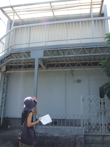We made an arrangement with a realtor in Atami to see two properties in besso areas and one in town. We got off at Izu Taga station on the Ito Line and were immediately entranced by the quaint leafy charm of the place. We walked down the steep hill to Nagahama beach. It was a blazing hot day and we were already drenched in sweat when we reached the realtor’s office, which is right across national road 135 from the beach. The agent who would be our guide had prepared floor plans for the three properties. The one in town we had just found the night before and he had only read our email that morning, so he didn’t have a key. His company was not the main realtor for any of the houses, though it did have them on its listings. He had obtained the keys for the two besso but would have to retrieve the other one from a different realtor if we wanted to see the interior. We said we’d look at the exterior first and then decide, since it was on the way to the first besso property.