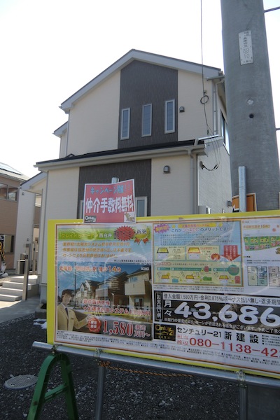 When we first met the realtor who was selling the land we were interested in at the actual lot, he brought with him a rough visual of the sort of house that could be built on it, along with a mock loan repayment scheme to show how cheap the monthly payments could be. At that point we hadn’t talked about our financial situation or what sort of house we wanted to build, and if we were impressed by the agent’s proactive salesmanship we were also leery of what it might lead to. Of course he wanted a sale on the land, but at ¥5.3 million his company wasn’t going to make a whole lot of money on the deal. What they wanted was also to build our house for us, and help us secure a mortgage. They were basically acting as developers, and had purchased this tract of land (relatively cheaply, because it was still being “adjusted for urban zoning”) with the idea that they could broker deals for houses and make even more money. Later, we would find out that of the five houses already constructed in the subdivision, only one had been built through the realtor. What impressed us about their offer wasn’t the forward thinking but rather the price. The agent said they could build us a house for ¥300,000 per tsubo (3.3 square meters) of floor area. In our mind we estimated that we wouldn’t need more than 30 tsubo, which means they could build us a house for ¥9 million, which was well within our budget. So while we didn’t say we would work with his company, we didn’t say we wouldn’t either.